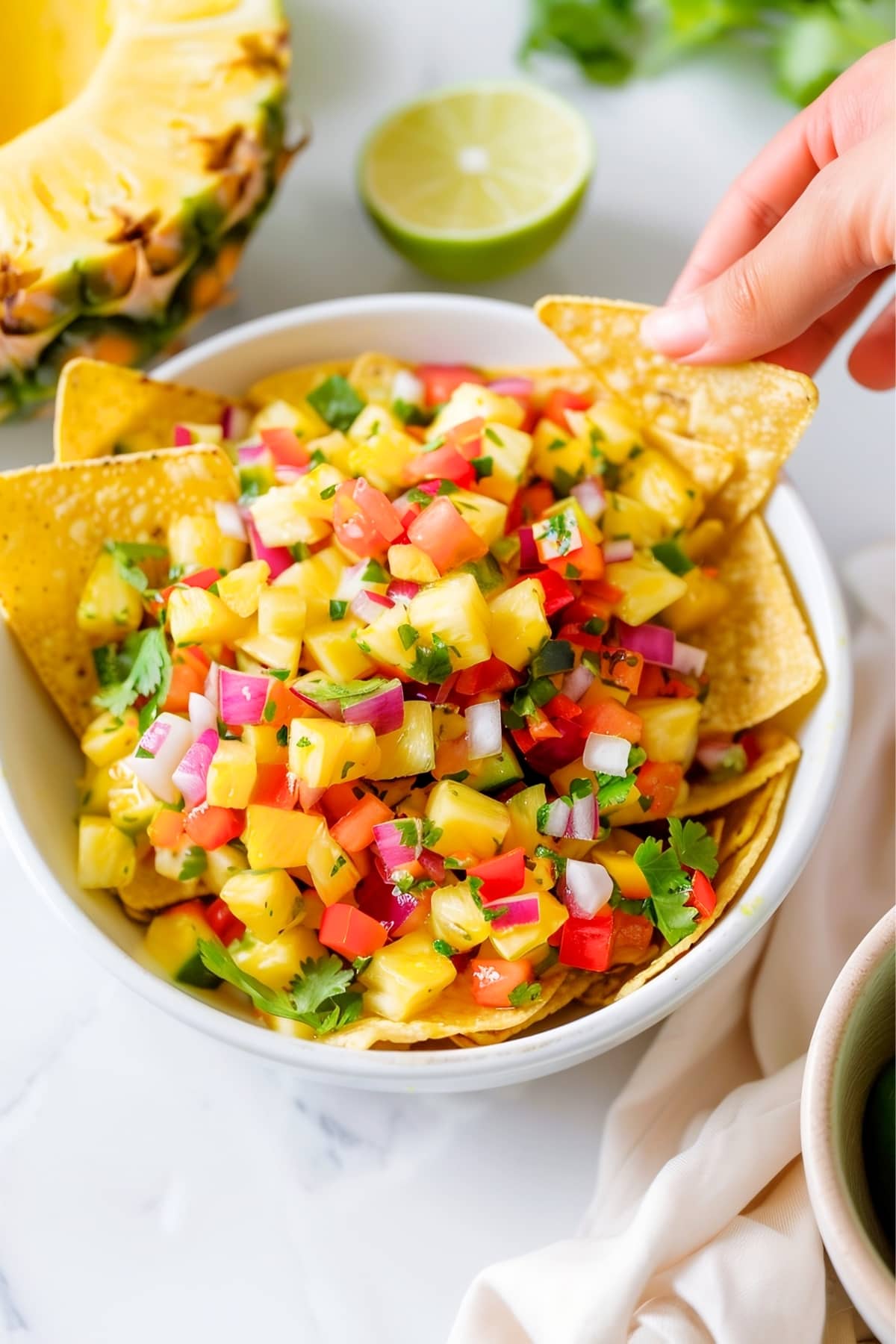 It’s a bright and refreshing mix of fresh pineapple chunks, diced red onion and tomatoes, and plenty of lime.