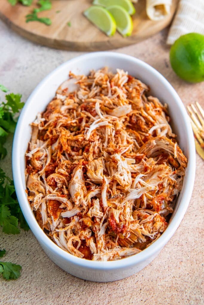 This recipe makes perfect chicken for tacos, burritos, and enchiladas!