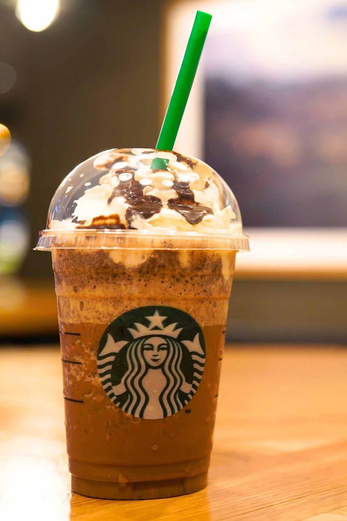It’s a divine concoction of milk, mocha sauce, and frappuccino chips, topped with whipped cream and more mocha sauce.